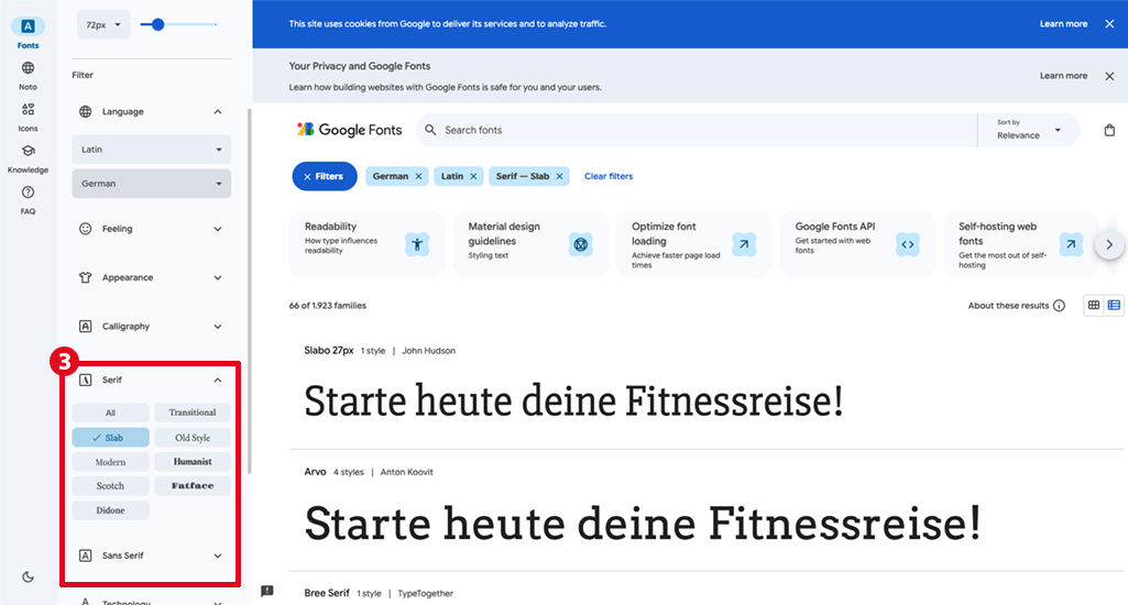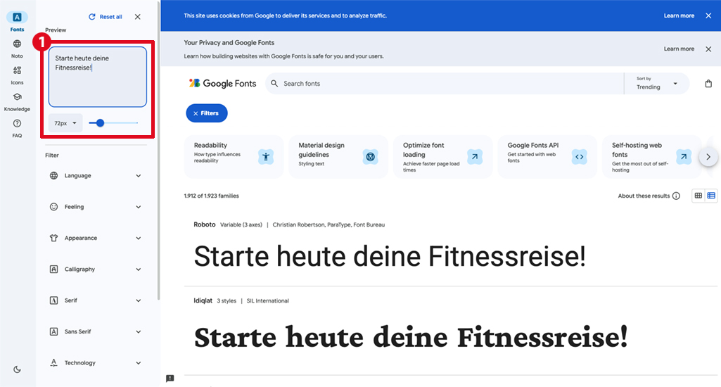 Damit reduzieren Sie die Auswahl auf relevante Fonts und machen die Navigation übersichtlich. Diese Einstellung hilft Ihnen, schneller die passenden Schriften für deutschsprachige Webseiten, Blogs oder Printprojekte zu finden.