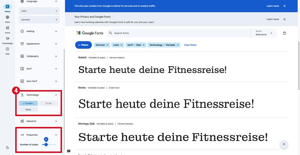 4. Variable Fonts und Anzahl Schriftschnitte auswählen